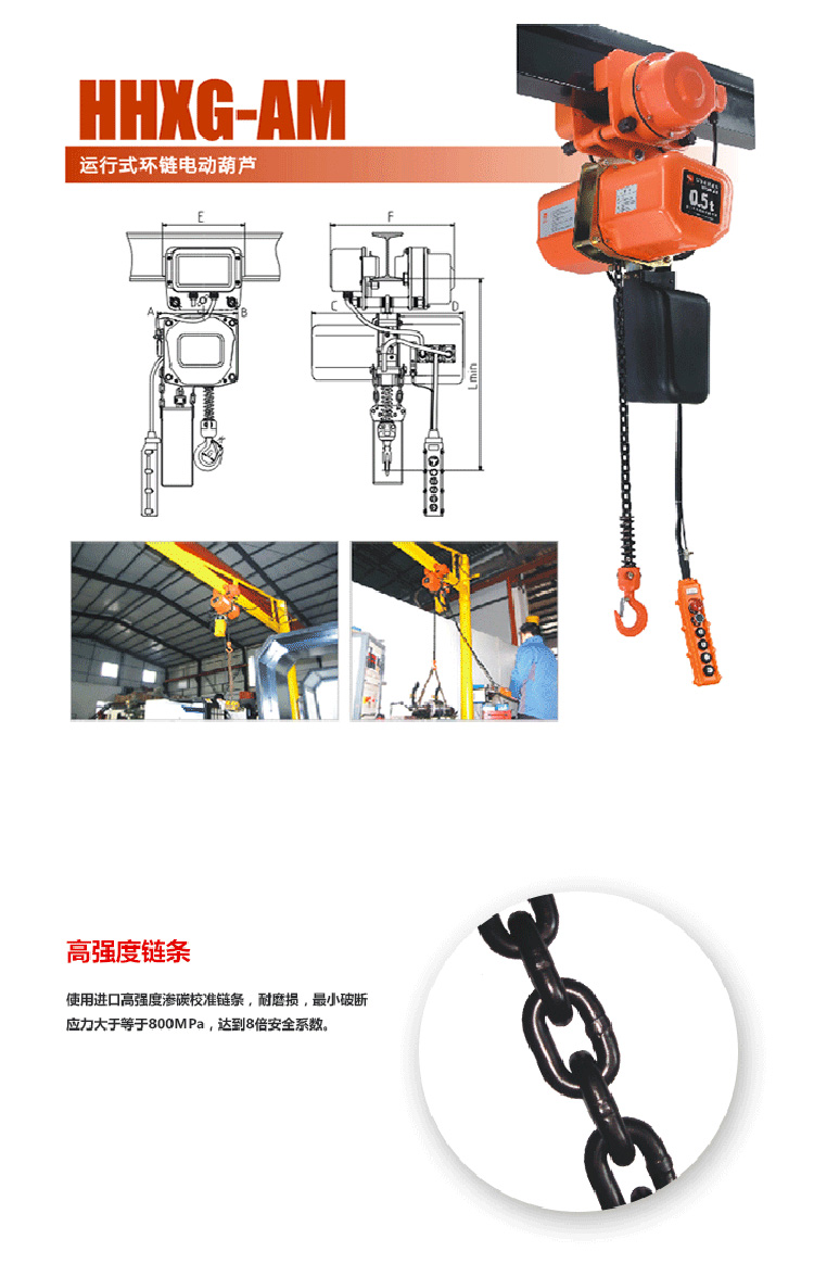 5、極限開關:吊上吊下都有極限快關裝置,使電機自動停止,反防止鏈條超出,確保安全。